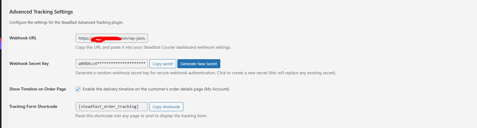 Webhook endpoint: https://yoursite.com/wp-json/steadfast-tracking/v1/webhook